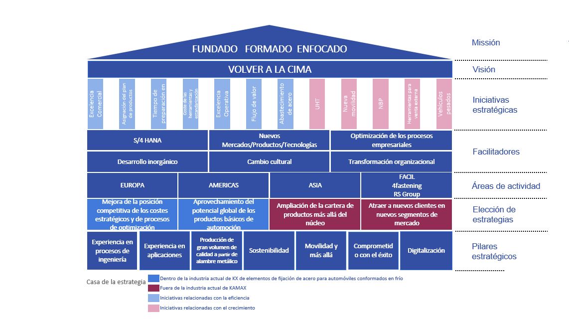En KAMAX hay cuatro ‘Strategic Directions’: Innovation, Sales, Efficiency und People (Innovación, Ventas, Eficiencia y Personas). Las acciones que se asignan a la estrategia y, por tanto, al objetivo ,Back to the Top', deben clasificarse en una de estas ‘Strategic Directions’.