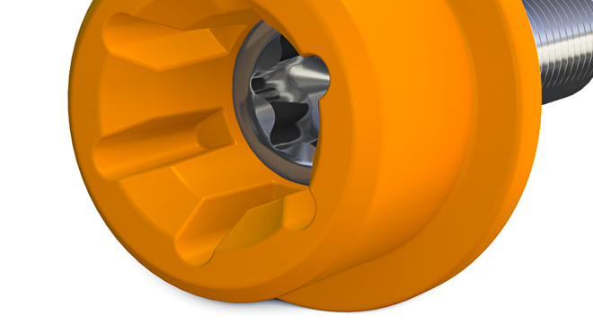 Použitím pridaného materiálu iba na správnom mieste je možné podstatne redukovať hmotnosť aj na hlave skrutky. Rozdiel potom robí spojenie s dodatočným využitím, teda možnosti štandardného vnútorného pôsobenia, vonkajšieho pôsobenia alebo kombinovaného pôsobenia.